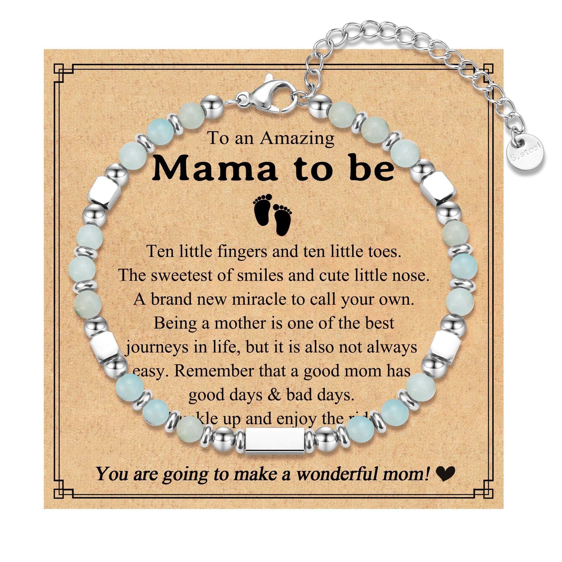 [First Mothers Day Gifts: Being a new mom is one of the best journey in life. Amazonite is considered a stone that helps to bring positive engergy peace and strength. It will be the best prenancy gifts 1st Mothers Day gifts for pregnant moms! Mom to Be Gifts: This stone bracelet comes with a sweet message card. She will be reminded that she is going to make a wonderful mama when she wears this bracelet. What a meaningful gift for mom to be new mom pregnant mom expecting mom. New Mom Bracelet: Handmade with high quality 316L stainless steel and 4mm natural stones this beaded bracelet size is 7"+ 2" extension. It is adjustable to fit most wrists and it helps to bring protection healing and good luck. Perfect Gifts for Pregnant Women: These bracelets are well packaged with a gift box an impressive message card and an empty greeting card. It is ready to give as first mothers day gifts prenancy gifts birthday gifts Christmas gifts etc.]