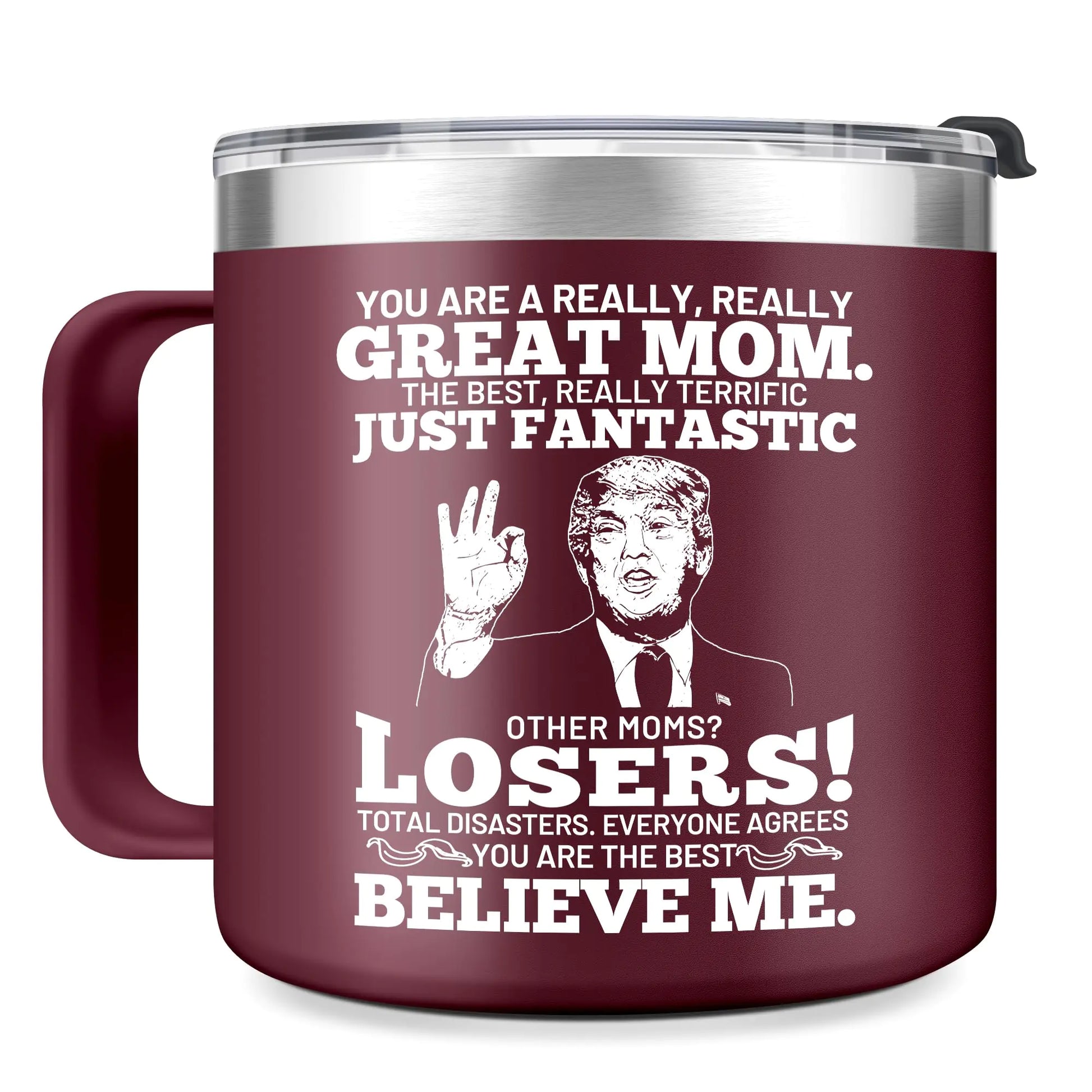 [FUNNY MUGS FOR MOM - Our mom-themed mugs are a must-have for every mom adding a touch of cuteness and humor. Perfect for the best mom stepmom mother-in-law adoptive mom wife every woman who becomes a mom. "GIFTS FOR EVERY OCCASION - Best Mothers Day gifts birthday gifts for mom thank you gifts for mom Christmas gifts for mom for the mom who has it all. This mug will remind her of her unique charm every time she uses it making it a warm and wonderful gift" "HIGH QUALITY MATERIAL - Our mugs are made of food-grade stainless steel which is durable unbreakable sweat-proof and rust-proof ensuring it wont affect the taste of your hot or cold drinks. It is easy to carry and allows you to enjoy a variety of beverages anytime anywhere such as coffee juice milk beer cocktails tea smoothies sodas etc" "BEST MOTHERS DAY GIFT IDEA - Let this beautifully designed mug become the most special souvenir in moms life whether it is a party afternoon tea breakfast camping or in the classroom office beach swimming pool lakeside it is the ideal companion. This cup conveys praise and love to mom" "CONVENIENT AND EASY TO CLEAN - This stainless steel mug wont retain any weird odors or flavors and cleans in seconds keeping moms favorite drinks fresh and refreshing. It has a sturdy handle that is comfortable to hold and provides a pleasant experience making it a perfect decoration for offices study rooms dining rooms living rooms cafes etc"]